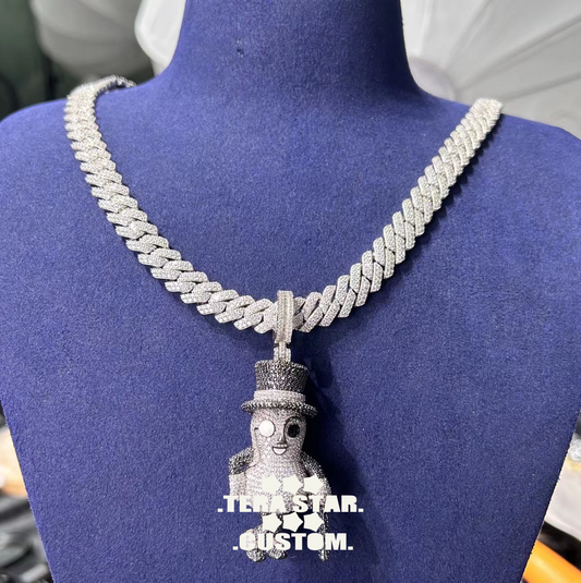 Custom Silver Plated With 18K White Gold Moissanite Pass Diamond Tester Mr. Peanut Pendant