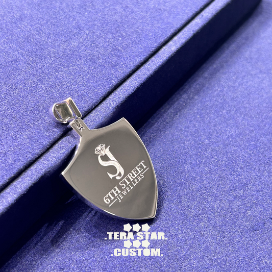 18K White Gold Iced Out Custom Letter Shield Pendant
