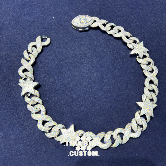 Custom 25.8mm Silver Plated With 18K Gold Star Cuban Link Chain