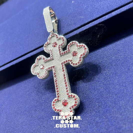 Silver 18K Real Gold Plating Red&White D Color VVS Moissanite Cross Pendant